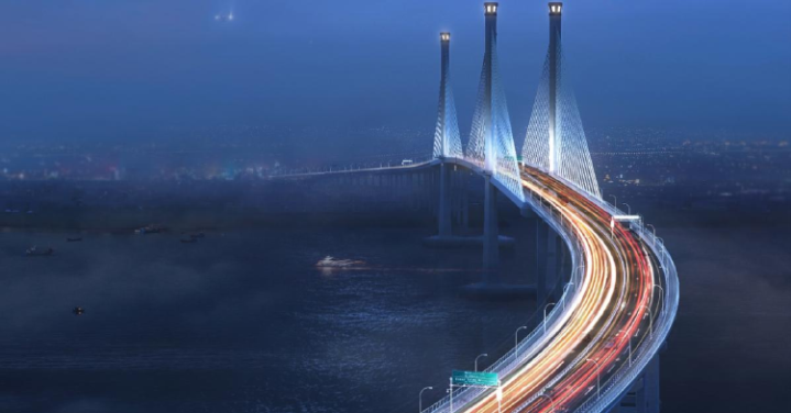 2022年,棪创科技作为圭亚那新德梅拉拉河大桥项目的设计咨询方,正式接手新桥的整体设计咨询工作。设计方案中,夜幕下的新桥宛如一条“巨蟒”横卧德梅拉拉河,不仅是河上一道亮丽的风景线,更是连通两地经济发展的关键通道。